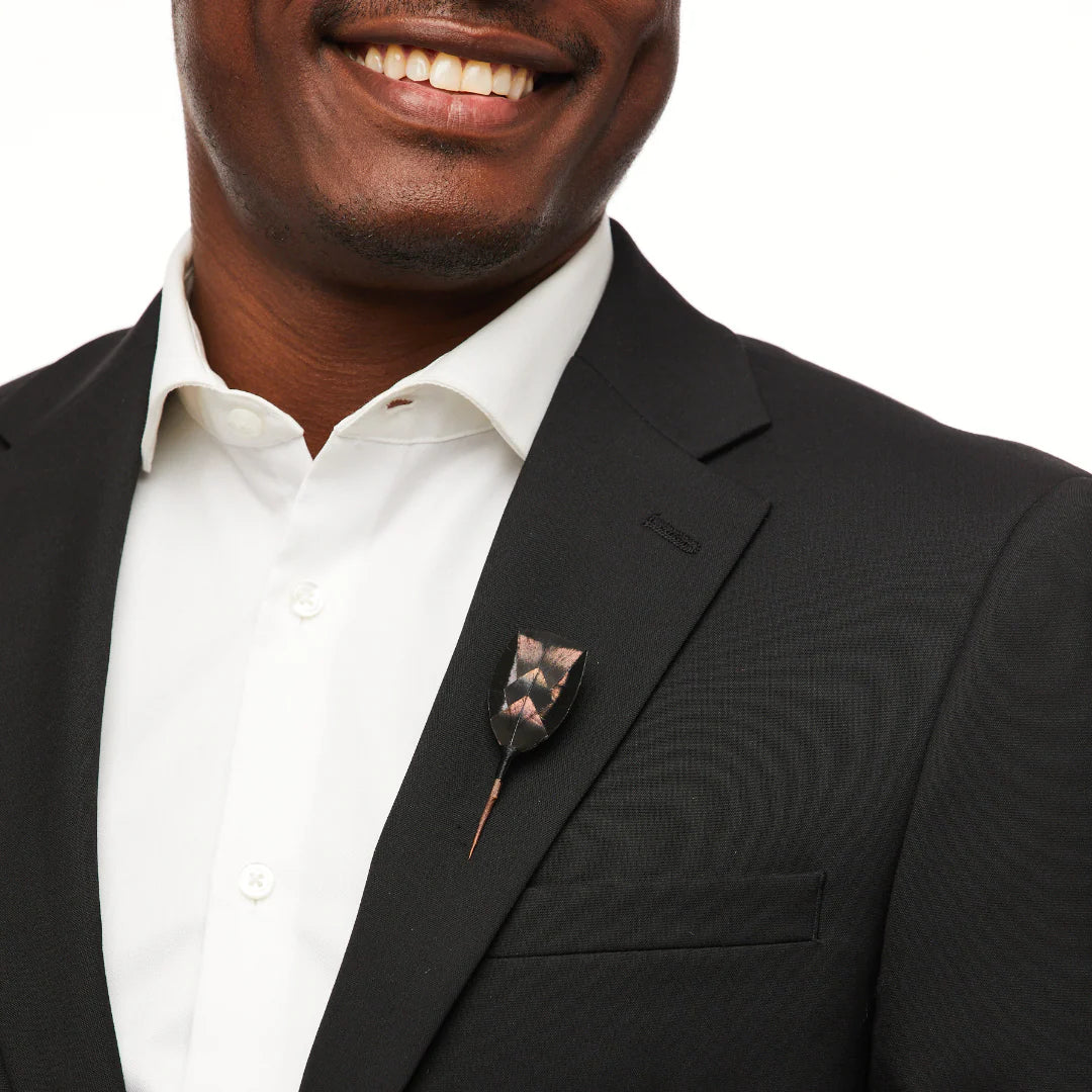 - To fasten to your desired garment, a brass eye pin and stopper lies behind each plum thicket thorn.