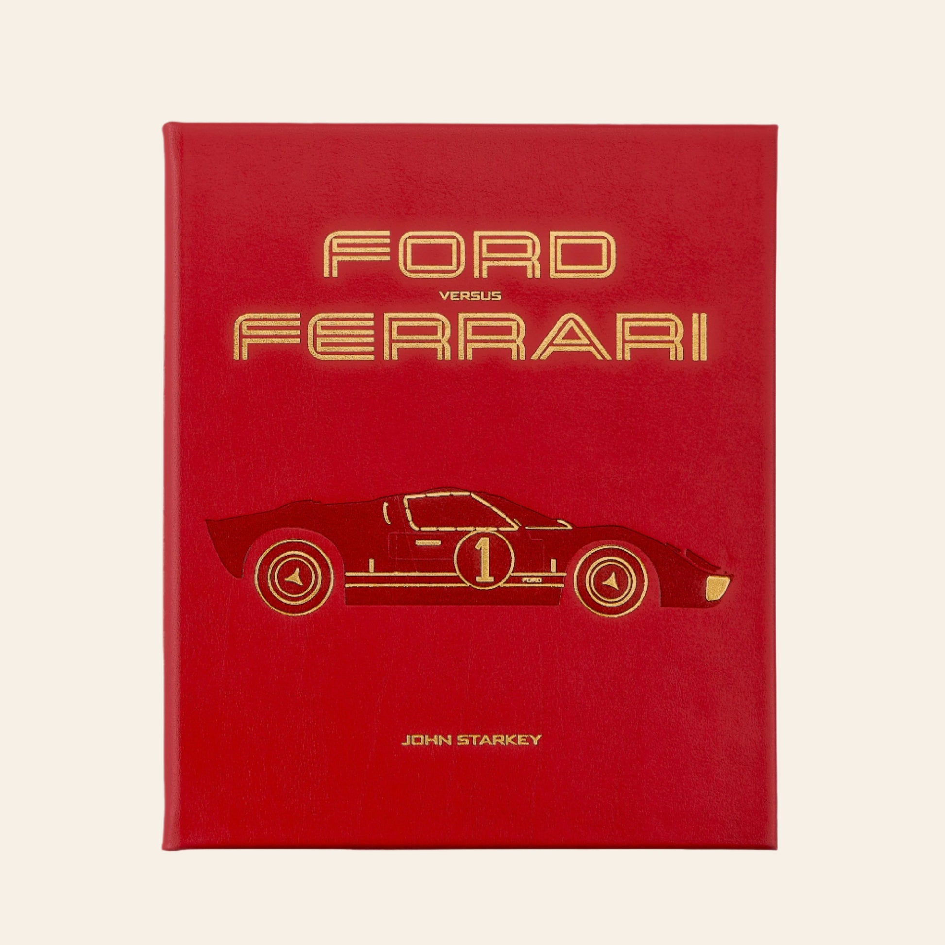 What happened when America's richest car company, producing thousands of cars per year, went head-to-head with Ferrari of Italy in the mid '60s? This is the story of Ford versus Ferrari. Enzo Ferrari, whose company produced fewer than four hundred cars per year in 1963, wasn't going to bow to Ford after he had turned down Ferrari's offer to buy his company. The only place left to duke it out was on the racetracks of the world… and one in particular: Le Mans '66. The perfect gift for any car enthusiast, our red leather-bound edition of "Ford versus Ferrari" adds vintage appeal to the bookshelf.