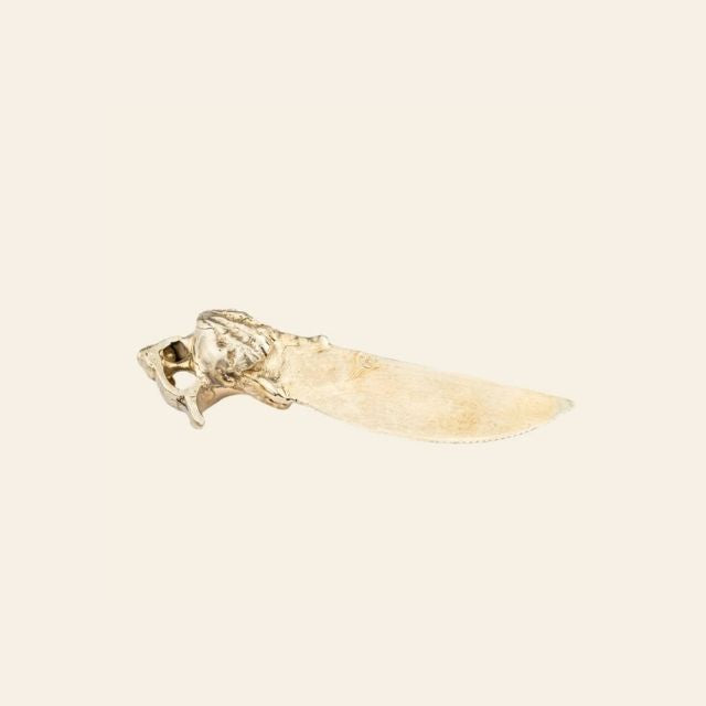 Hand carved & cast in solid brass mimicking the treasures found onboard a sunken ship within the depths of the sea. The perfect dip spreader or cheese knife.