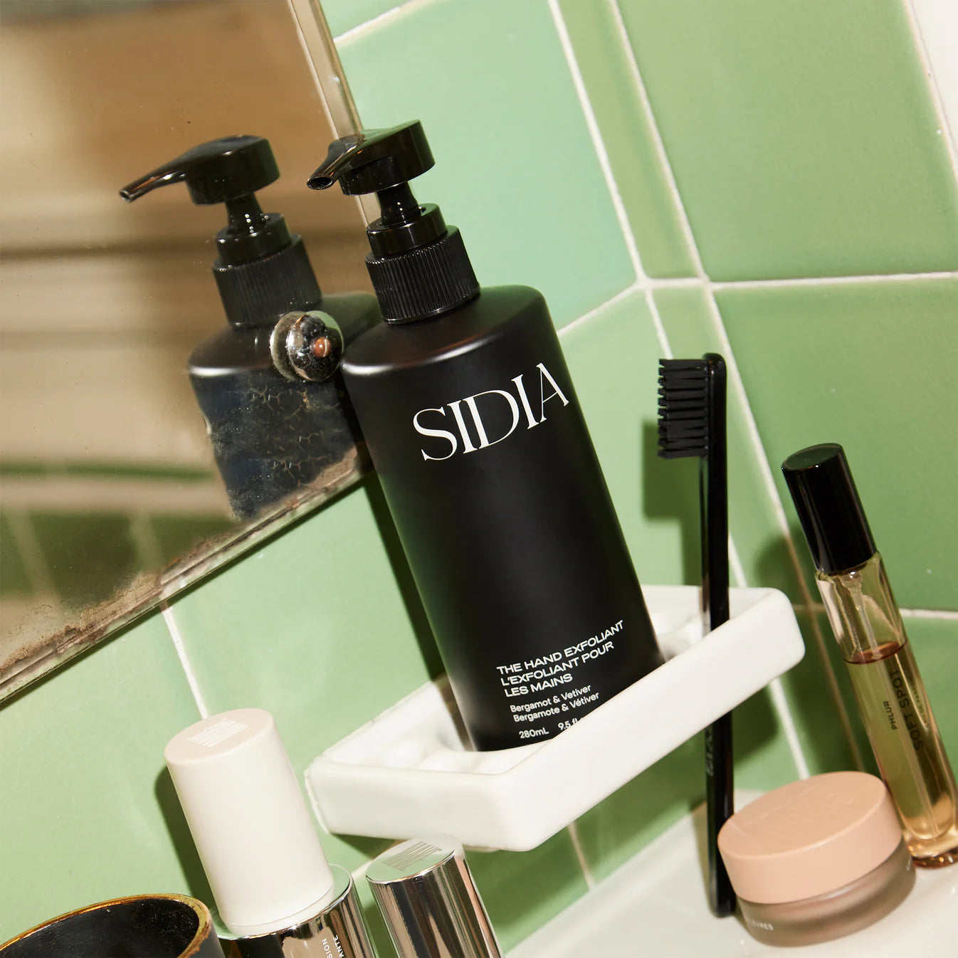 Our gentle cleansing Hand Exfoliant features fine perlite to carefully slough unwanted skin and boasts plant-based retinol dupe rambutan to smooth fine lines. Your hands instantly feel soft and rejuvenated. Housed in our signature black matte sleek bottle - this product is primed for success in any powder room, or for more selfish use on your vanity. You pick.