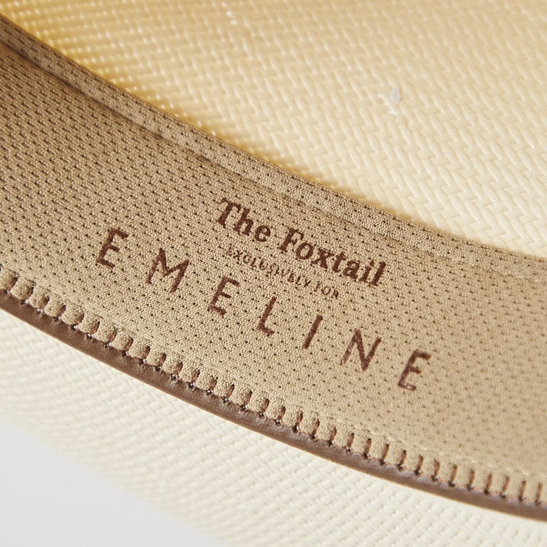 In collaboration with Stetson, our custom straw hat, 'The Foxtail' is inspired by the 'foxtail fern' which is native to Charleston and a strong influence in the design of Emeline. A straw boater style hat with a forest green grosgrain band Made in TX